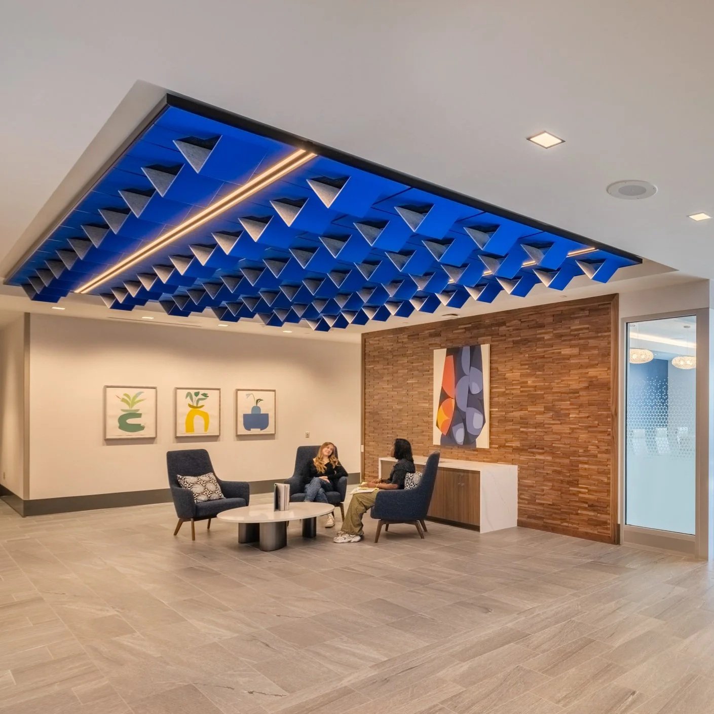 FACT Design is best known for its innovative folding acoustic ceiling tiles and wall panels that enhance both the aesthetics and acoustics of interior spaces. Our products are designed in collaboration with renowned origami artists such as Peter Dahmen and Paul Jackson, allowing the tiles to ship flat and transform into three-dimensional forms upon installation.