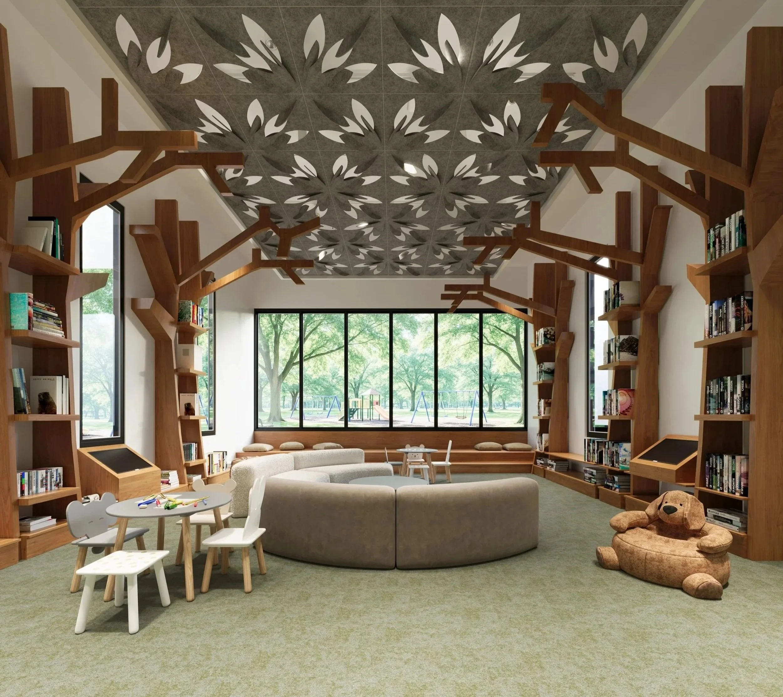 • Cognitive Clarity: The "Canopy Effect" provides a sense of enclosure and safety (prospect and refuge), which helps improve focus and creative problem-solving.